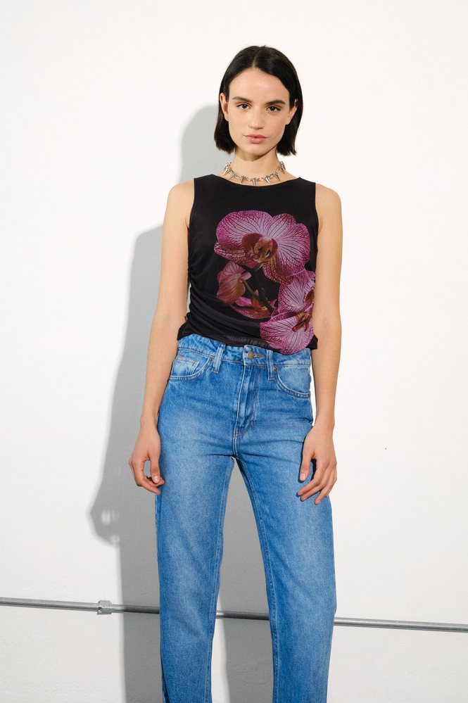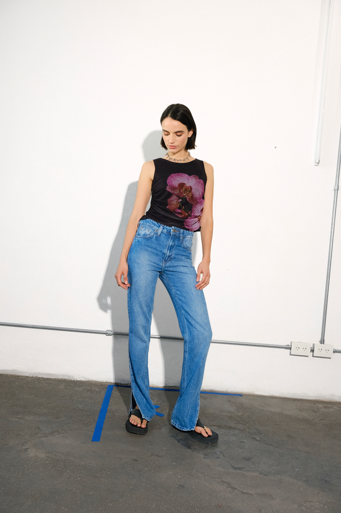 La modelo mide 1.75cm, contorno de busto 85cm, contorno de cintura 64cm y contorno de cadera 91cm, usa un talle 24