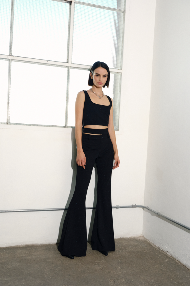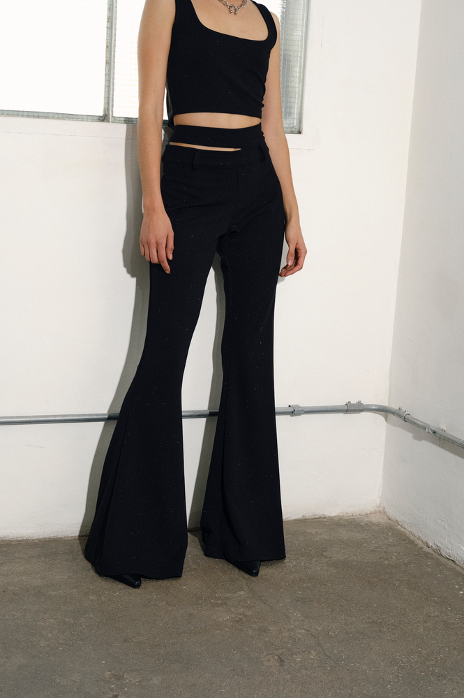 Pantalón de punto rayado de hilo de lurex con silueta oxford y detalle de doble cintura