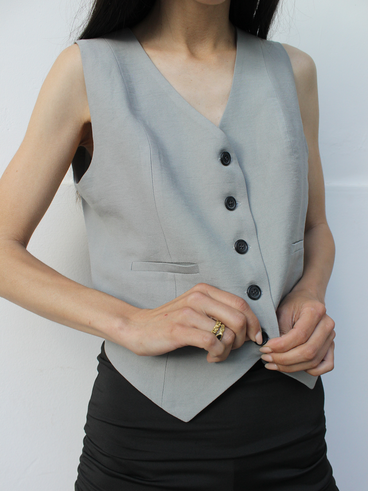 Chaleco sastrero clásico liso con bolsillo ojal y espalda más corta